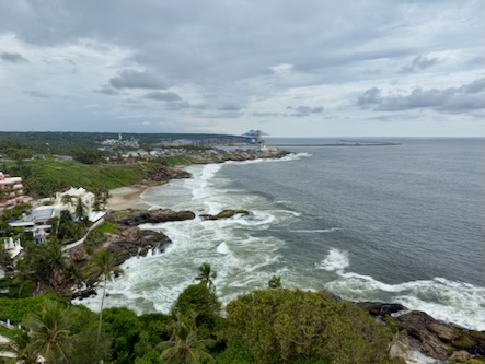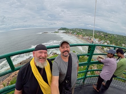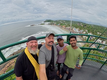 Um 14 Uhr wurden wir dann pünktlich abgeholt und nach einer guten Dreiviertelstunde Fahrt war unser erstes Ziel das Vizhinjam Lighthouse. Der 36 Meter hohe Leuchtturm befindet sich in der Nähe vom Kovalam Beach und wurde 1972 in Betrieb genommen. Von der Plattform gleich unterhalb der Laterne, hat man eine tolle Aussicht über die umliegenden Strände und den Ozean. | ![]() |