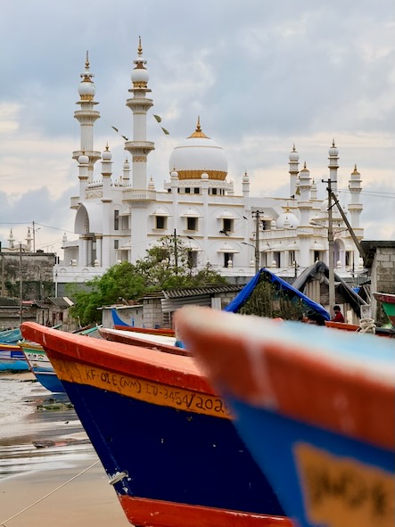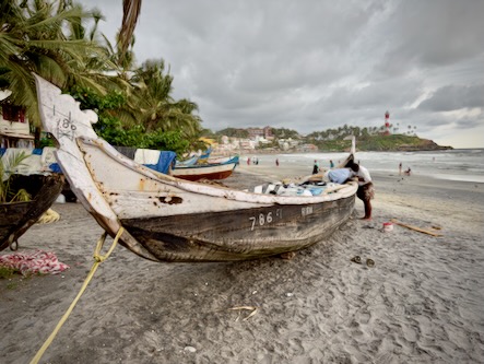 Am Vizhinjam Fischereihafen konnten wir noch die zahlreichen Fischerboote beobachten, wie sie gerade auslaufen. Die Fischer werden die ganze Nacht auf See bleiben und kommen erst um eins, zwei oder drei Uhr in der Früh zurück. In unmittelbarer Nähe besuchten wir ausserdem noch die Muhyiddin Juma Masjid, eine sehr schöne Moschee, direkt am Meer. Anschließend sind wir noch zu mehreren Stränden gefahren: Lighthouse Beach, Hawaii Beach, Kovalam Beach und Aazhimala Cliff. Bei letzterem haben wir noch kurz den Aazhimala Shiva Tempel besucht. Auf der Heimfahrt machten wir Halt einem hervorragendem vegetarischem Restaurant, das uns uns Shojan empfohlen hatte. | ![]() |
