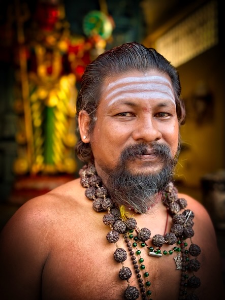 Am Vormittag haben wir zunächst das Viertel rund um unser Hotel zu Fuß erkundet, haben ein paar kleinere Tempel zwischen den Wohn- und Geschäftshäusern entdecket und wurden von einem Priester in seinen Kali-Tempel hineingebeten. Er hat uns dann sogar zwei Banane geschenkt! Viele andere Passanten haben uns wie üblich angesprochen und wollten wie immer wissen, woher wir kommen, wie lange wir bleiben, was uns am besten gefallen hat und Fotos zusammen machen… | ![]() |