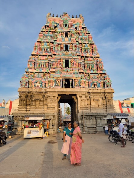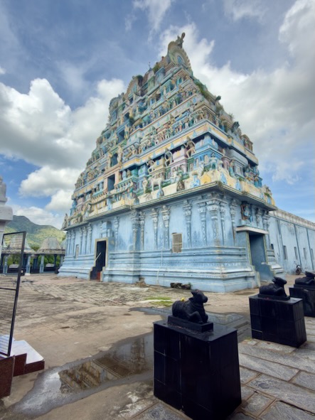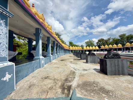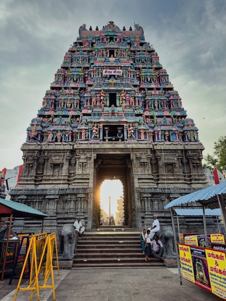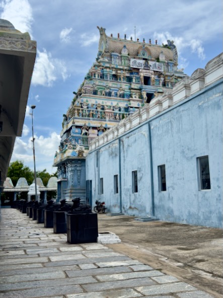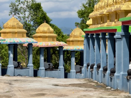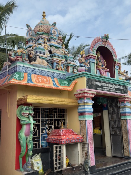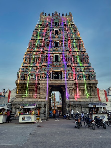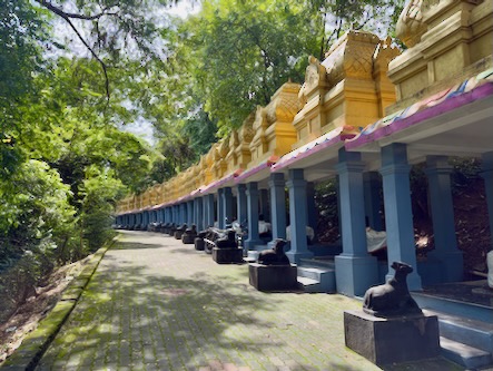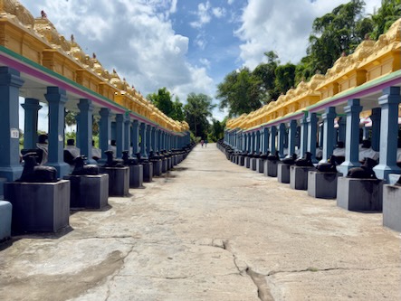 Nach einem kurze Stopp im Hotel sind wir mit einem Tuktuk ins ca. 13 Kilometer südlich gelegene Ariyanoor gefahren und haben dort den „1008 Shiva und Rajarajeshwari Tempel“ gefahren. Dort gibt es mehrere große Haupttempel und 1008 kleinere Tempel mit Lingams und Nandis. Die Tempel liegen in einer parkartigen Anlage an einem Hügel mit viel Grün und Wegen zum Spazieren. | ![]() |