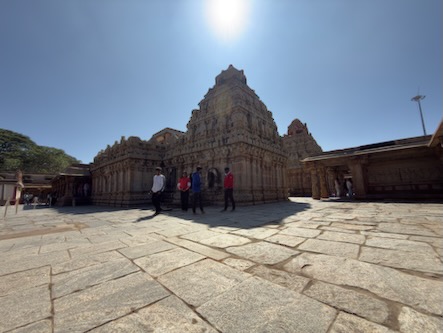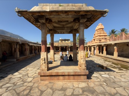 Kannada Rajyotsava ist in Karnataka ein staatlicher Feiertag und wird von Kannada-Sprechern weltweit gefeiert. Zu den Feierlichkeiten gehören die Bekanntgabe und Verleihung der Rajyotsava Awards durch die Regierung von Karnataka, das Hissen der Karnataka-Flagge mit einer Ansprache des Ministerpräsidenten und des Gouverneurs von Karnataka sowie Gemeindefeste, Konzerte, Buchvorstellungen in Kannada etc. Entsprechend war auch der Tumult auf den Straßen rund um unser Hotel. Wir haben daher einen Ausflug ca. eineinhalb Stunden nördlich von Bengaluru, ins Dorf Nandi gemacht und haben dort den Sri Bhoga Nandishwara Tempel besucht. Es handelt sich dabei um den ältesten noch existierenden Tempel im Nolambavadi-Stil in Karnataka. Die beeindruckende Tempelanlage ist rund tausend Jahre alt.