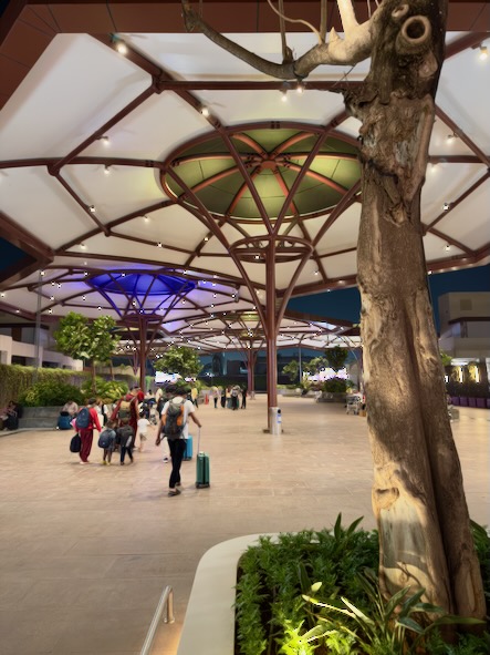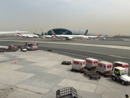 Am zweiten Tag unserer Reise sind wir ja am frühen Morgen Ortszeit in Dubai angekommen. Dort mussten wir 6 Stunden auf unseren Anschlußflug warten. Um 13:35 Uhr ging es dann schließlich mit erin Boeing 777-300 weiter nach Bangalore, wo wir nach rund dreieinhalb Stunden in der Dämmerung landeten.