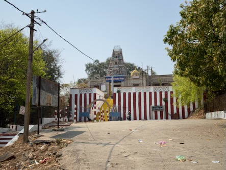 Wenig später erreichten wir schließlich den Sri Pralaya Kalada Virabadhra Swami Temple, der auf einer kleinen Anhöhe liegt. Von dort oben hatte man eine schöne Aussicht auf die umliegenden Häuser und das geschäftige Leben der Stadt. Der Tempel selbst strahlte eine ruhige, fast zeitlose Atmosphäre aus – ein Ort, an dem man für einen Moment dem Trubel entkommen kann.