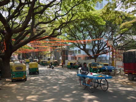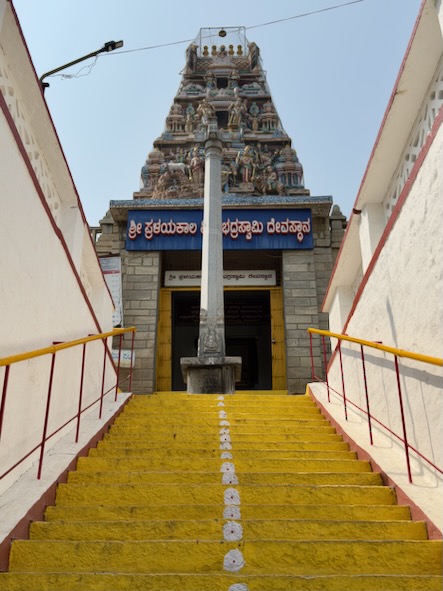 Unser erster Tag in Bangalore begann ganz entspannt mit einem gemütlichen Frühstück. Frisch gestärkt machten wir uns anschließend mit einer Autorikscha auf den Weg in den Stadtteil Kempegowda. Unser Ziel war der Sri Pralaya Kalada Virabadhra Swami Temple, von dem wir gehört hatten, dass er etwas erhöht liegt und einen schönen Blick auf die Umgebung bietet.
