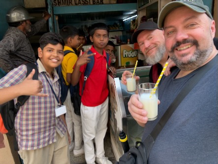 Keine halbe Stunde später gerieten wir mitten in eine fröhliche Horde Schulkinder, die gerade auf dem Heimweg war. Einige der Jungs, vielleicht zehn bis zwölf Jahre alt, beschlossen kurzerhand, uns ihr Viertel zu zeigen. Mit großer Begeisterung führten sie uns durch die kleinen Straßen und Gassen. Natürlich durfte auch eine Erfrischung nicht fehlen – am Ende landeten wir gemeinsam bei einem Lassi.