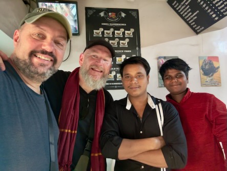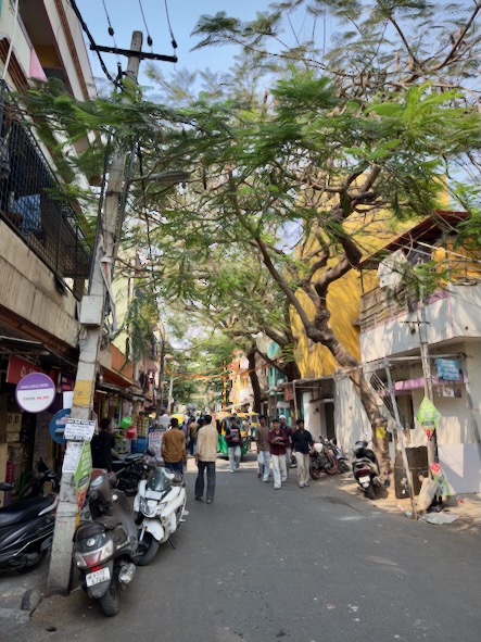 Der Tag begann entspannt mit einem Frühstück im Hotel, bevor wir uns mit der Metro auf den Weg zum Lalbagh Botanical Garden machten. Schon beim Betreten des weitläufigen Geländes spürten wir, dass dieser Ort mehr ist als nur ein Park – er ist eine grüne Oase mitten in der Stadt. Wir schlenderten über verschlungene Wege, vorbei an riesigen alten Bäumen, blühenden Beeten und ruhigen Teichen. Besonders faszinierend war eine kleine Ecke des Gartens, in der mehrere Bildhauer arbeiteten. Mit großer Geduld und beeindruckender Präzision schufen sie Skulpturen aus Holz und Stein, die später ihren Platz im Garten finden sollen. Wir blieben eine ganze Weile stehen, beobachteten ihre Arbeit und kamen schließlich auch ins Gespräch mit ihnen. Es war spannend zu hören, wie viel Zeit, Erfahrung und Leidenschaft in jede einzelne Figur fließt. Den ganzen Vormittag verbrachten wir damit, den botanischen Garten zu erkunden. Erst gegen Mittag zog es uns weiter in Richtung Marktviertel. In der lebhaften Old Market Street legten wir einen kulinarischen Zwischenstopp bei der traditionsreichen VB Bakery ein. Dort probierten wir mehrere gefüllte Brote – jedes ein wenig anders, aber alle unglaublich lecker. Zwischen Gewürzen, frischem Gebäck und dem geschäftigen Treiben der Straße fühlte sich dieser Ort wie ein kleines kulinarisches Abenteuer an. Am Nachmittag fuhren wir weiter in den Stadtteil New Guddadahalli. Dort beschlossen wir einfach loszulaufen und uns treiben zu lassen. Mehrere Kilometer lang erkundeten wir Straßen, die eine faszinierende Mischung aus Wohnviertel, kleinen Geschäften und traditionellen Werkstätten bilden. Überall gab es etwas zu entdecken – Handwerker bei der Arbeit, kleine Läden mit allem Möglichen und immer wieder neugierige Blicke. Die Menschen dort begegneten uns mit einer Offenheit und Freundlichkeit, die uns wirklich berührte. Oft konnten wir kaum zwei Schritte gehen, ohne dass uns jemand ansprach, uns die Hand schütteln wollte oder ein gemeinsames Foto machen wollte. Diese spontanen Begegnungen machten den Spaziergang zu etwas ganz Besonderem. Zum Abschluss des Tages landeten wir schließlich in dem gleichen kleinen Lassi-Shop, den wir bereits im letzten Jahr entdeckt hatten. Ein Ort, der fast schon ein bisschen vertraut wirkt. Dort gönnten wir uns noch ein herrlich erfrischendes Mango Lassi. Als wir später zurück ins Hotel kamen, zeigte der Schrittzähler fast 11 Kilometer an. |