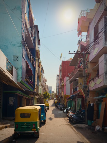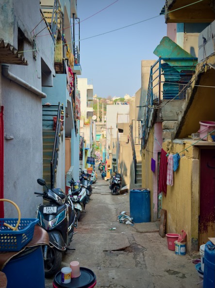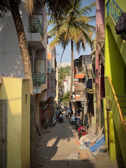 Und heute nach dem Frühstück im Hotel stiegen wir wieder in eine Autorikscha und ließen uns in einen der westlicheren Stadtteile von Bangalore bringen. Von dort aus machten wir uns zu Fuß auf den Weg zurück in Richtung Zentrum – wie so oft ohne festen Plan, dafür mit offenen Augen und viel Neugier.