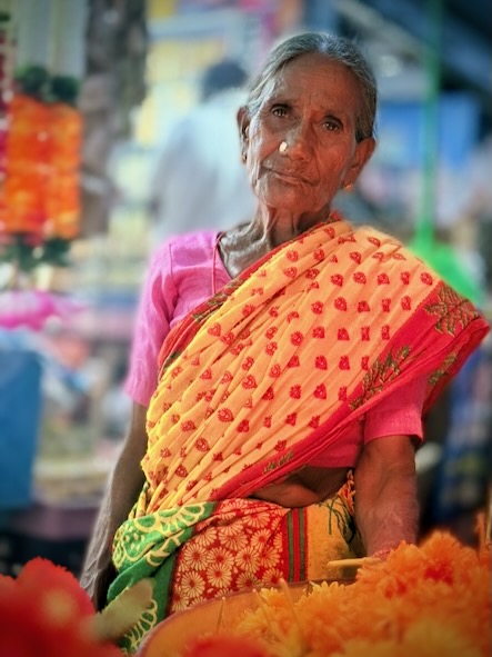 Gestärkt machten wir uns danach auf den Weg durch den lokalen Markt. Zwischen den engen Gassen reihten sich farbenprächtige Stände aneinander: leuchtende Früchte, frisch geerntetes Gemüse und duftende Blumen, kunstvoll zu Girlanden gebunden. Immer wieder blieben wir stehen, kamen ins Gespräch mit den Händlern, tauschten ein paar Worte, ein Lächeln – kleine Begegnungen, die den Ort lebendig machten und uns das Gefühl gaben, für einen Moment Teil dieses Alltags zu sein. Die schattigen Gänge zwischen den Marktständen boten uns ausserdem Schutz vor der Sonne, immerhin hatte es heute 36 Grad, für die nächsten Tage sind sogar 37 und 38 Grad angesagt!