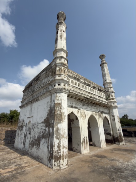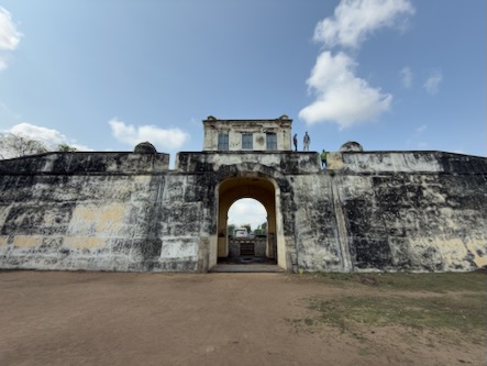 Anschließend setzten wir unsere Reise nach Arcot fort. Dort tauchten wir ein Stück weit in die Geschichte der Region ein und besichtigten gleich zwei bedeutende Bauwerke: das historische Delhi Gate sowie die Überreste des Arcot Forts, die von vergangenen Zeiten erzählen. Arcot ist eine eher ruhige, aber historisch äußerst bedeutende Stadt im Bundesstaat Tamil Nadu. Sie liegt am Ufer des Palar-Flusses und war im 18. Jahrhundert ein strategisch wichtiger Ort – insbesondere während der Machtkämpfe zwischen lokalen Herrschern, den Moguln und europäischen Kolonialmächten wie den Briten und Franzosen. Arcot war einst die Hauptstadt der sogenannten Karnatischen Nawabs und entwickelte sich dadurch zu einem politischen und militärischen Zentrum Südindiens. Ein besonders markantes Bauwerk ist das Delhi Gate. Dieses massive Tor aus dem 18. Jahrhundert ist eines der wenigen noch gut erhaltenen Überbleibsel der alten Befestigungsanlagen von Arcot. Die Überreste des Arcot Fort erzählen von einer Zeit voller Konflikte und politischer Intrigen. Besonders bekannt ist das Fort durch die Belagerung von Arcot im Jahr 1751, ein Teil der Karnatischen Kriege zwischen Briten und Franzosen. Der junge britische Offizier Robert Clive verteidigte das Fort mit einer vergleichsweise kleinen Truppe erfolgreich gegen eine deutlich größere Streitmacht. Dieser Sieg war ein Wendepunkt und trug maßgeblich zum wachsenden Einfluss der Briten in Indien bei. Heute sind vom Fort selbst nur noch Ruinen und Erdwerke erhalten, doch mit etwas Vorstellungskraft kann man sich gut ausmalen, wie bedeutend dieser Ort einst war.