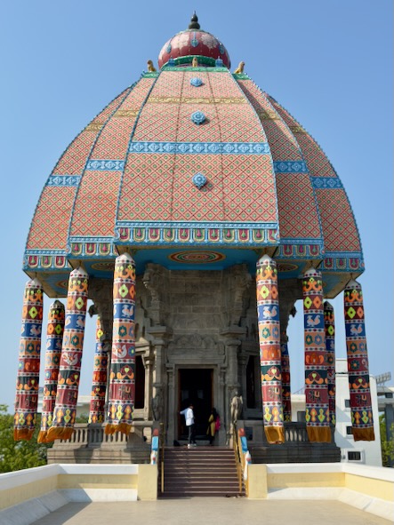 Nach einer kurzen Pause zog es uns am späten Nachmittag noch einmal hinaus in die lebendige Hitze der Stadt. Unser erstes Ziel war das Valluvar Kottam, ein beeindruckendes Monument zu Ehren des tamilischen Dichters und Philosophen Thiruvalluvar.