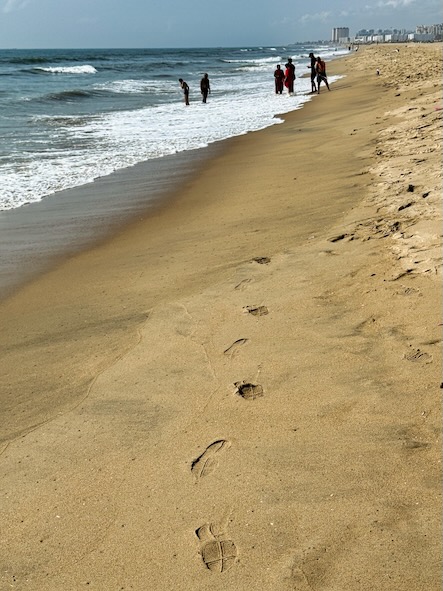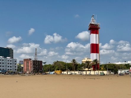 Wir starteten unseren Tag im geschäftigen Stadtteil George Town und machten uns von dort aus auf den Weg zum Meer. Am nördlichen Ende des Marina Beach begannen wir unseren langen Spaziergang Richtung Süden. Der über 13 Kilometer lange Strand zählt zu den längsten urbanen Stränden der Welt – und genau so fühlte es sich auch an: endlos, lebendig und voller Eindrücke.
