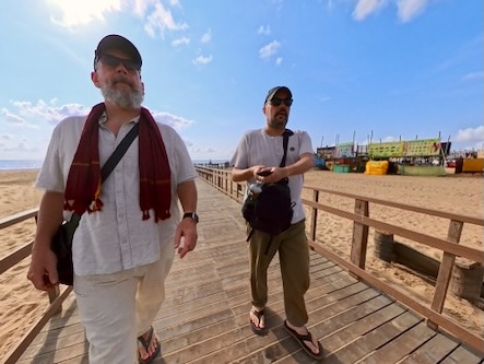 Am dreizehnten Tag unserer Reise ließen wir den Trubel der Stadt zunächst hinter uns und machten uns am Morgen mit einer Autorikscha auf den Weg in einen der südlicheren Teil evon Chennai – nach Besant Nagar. Unser erstes Ziel war der Elliot’s Beach, der um diese frühe Stunde noch fast menschenleer war. Die kleinen Verkaufsbuden entlang der Promenade hatten ihre Läden noch geschlossen, und nur vereinzelt begegneten wir ein paar Spaziergängern. Die ruhige Stimmung, das sanfte Rauschen der Wellen und die frische Morgenluft gaben dem Ort eine fast meditative Atmosphäre.
