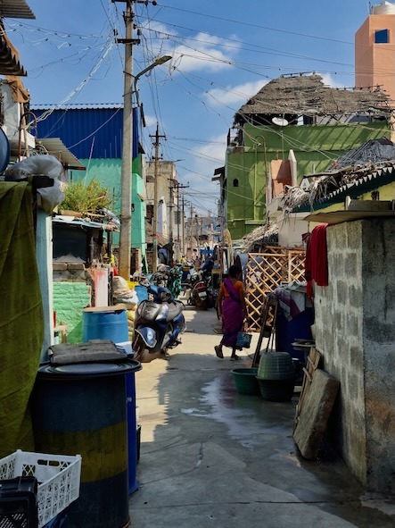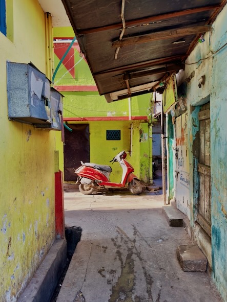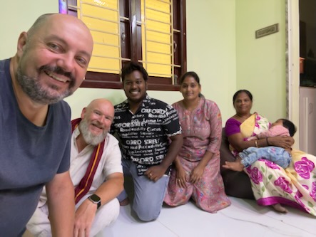Wir erhielten eine Einladung für heute Nachmittag: Die Familie wollte uns bei sich zu Hause zum Essen empfangen. Und nicht nur das – sie bestanden darauf, uns persönlich abzuholen. Pünktlich um 13 Uhr fuhr Balaji gemeinsam mit seiner Frau Rajeshwari und ihrer eineinhalbjährigen Tochter Pearly vor unserem Hotel vor. Mit großer Selbstverständlichkeit und Herzlichkeit nahmen sie uns mit zu ihrem Haus am Stadtrand.