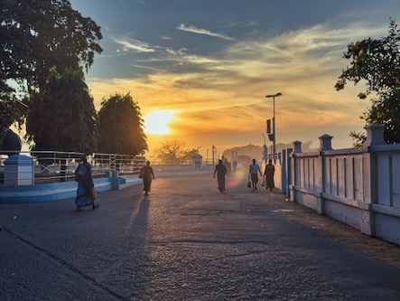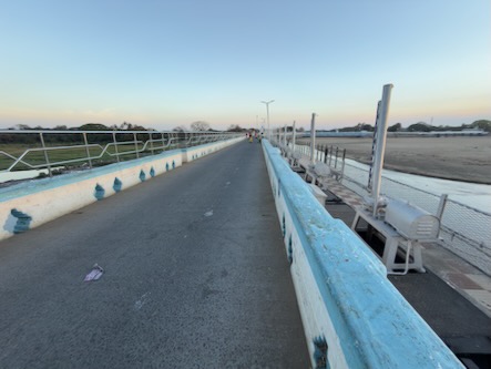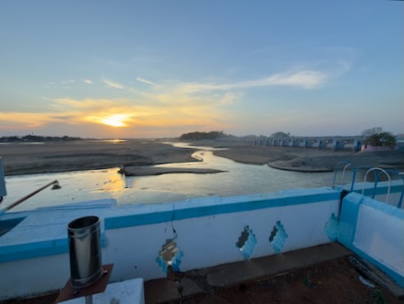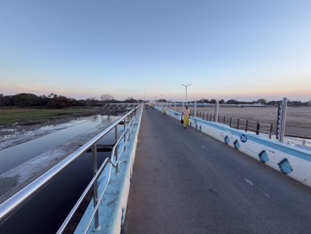 Nach angeregten Gesprächen und einer Tasse Kaffee brachen wir gemeinsam noch einmal auf. Kurz vor Sonnenuntergang fuhren wir zum Grand Anaicut, auch bekannt als Kallanai-Staudamm. Dieses beeindruckende Bauwerk gilt als einer der ältesten noch in Betrieb befindlichen Dämme der Welt. Er wurde bereits im 2. Jahrhundert n. Chr. vom Chola-König Karikala erbaut und dient bis heute der Bewässerung der fruchtbaren Felder im Kaveri-Delta – ein faszinierendes Zeugnis antiker Ingenieurskunst.
