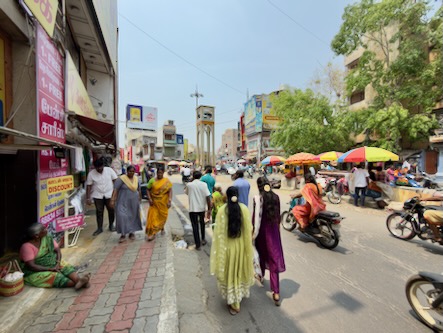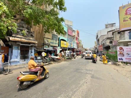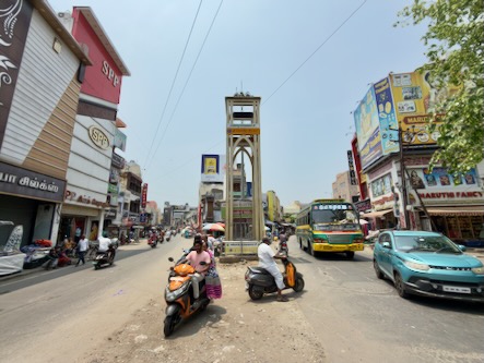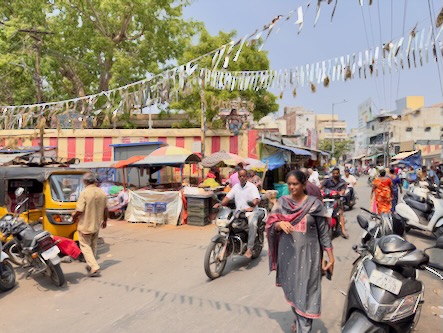 Wir streiften durch Periyar Nagar, erkundeten die Gegend rund um Erode Fort (mehr „Gegend“ als „Fort“, aber wir waren optimistisch) und besuchten die CSI Brough Memorial Church – eine hübsche Kirche aus dem 19. Jahrhundert, perfekt geeignet, um kurz so zu tun, als wäre man nicht komplett durchgeschwitzt. Natürlich erwischten wir auch gerade den Anfang des Ostersonntagsgottesdienstes und der Pfarrer steuerte – als er uns erblickte – zielsicher auf uns zu. Natürlich die obligatorischen Fragen, woher, weshalb warum… Dann rief seine Arbeit und wir machten uns aus dem Staub.