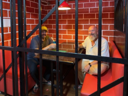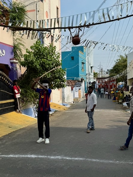 In der Thirunagar Colony fanden wir dann endlich etwas wirklich Sehenswürdiges: Kuchen. Ein wahrer kultureller Höhepunkt. Danach spazierten wir noch durch die Jaganathapuram Colony, bevor wir den Tag stilecht in einem Gefängnis-Restaurant beendeten. Ironischerweise fühlte sich das bei der Hitze fast passend an – freiwillige Haft im klimatisierten Innenraum.