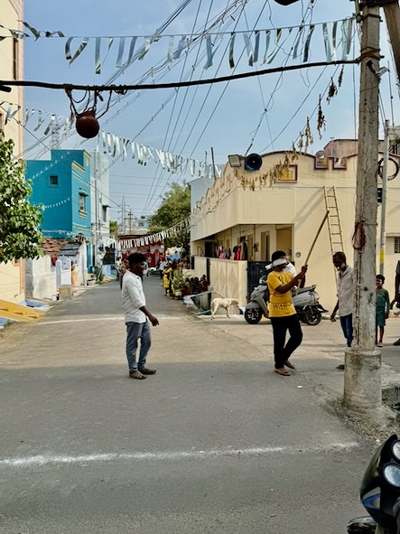 Aber bevor wir Erode endgültig den Rücken kehren, haben wir den heutigen Tag noch einmal genutzt – und zwar in zwei Akten: „Spaziergang bei angenehmen Temperaturen“ (früh morgens) und „Spaziergang, weil wir offenbar nichts dazugelernt haben“ (am Nachmittag). Dazwischen erreichte das Thermometer entspannte 40–41 Grad, also ungefähr die Temperatur, bei der man ernsthaft darüber nachdenkt, einfach in einen Kühlschrank einzuziehen. Die Mittagspause war dementsprechend weniger eine Option als vielmehr eine Überlebensstrategie.