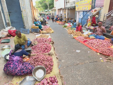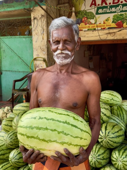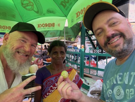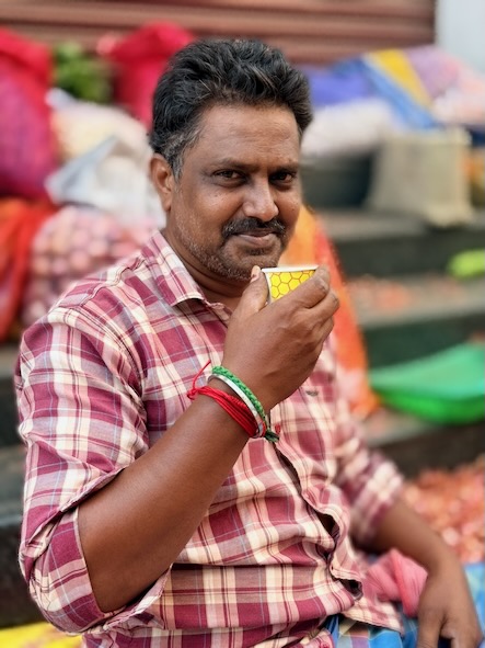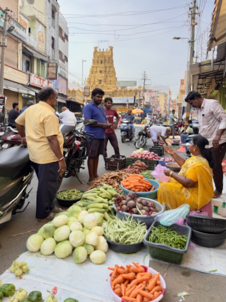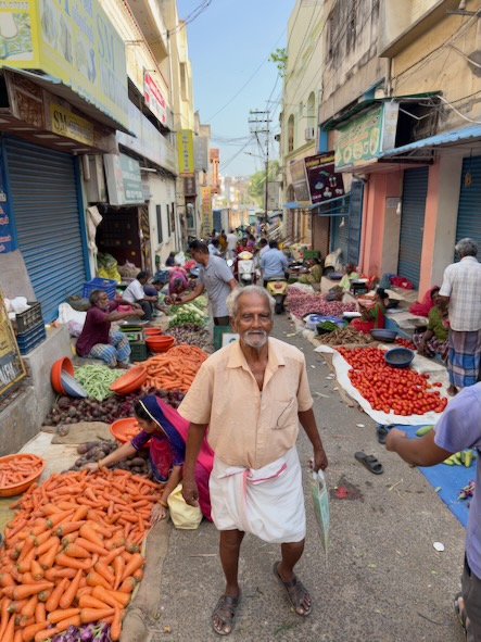 Unser zweiter Tag in Salem begann – ganz typisch für uns – recht früh. Es ging in den Stadtteil Agraharam, wo uns der örtliche Gemüsemarkt begeistert hat. Die Händler: bestens gelaunt, extrem gesprächig und offenbar große Fans der Kamera. Es wurde gelacht, posiert und viele wollten ein Foto.