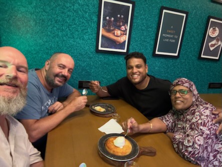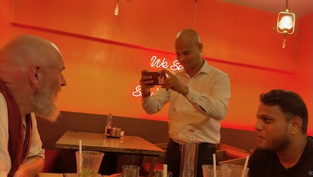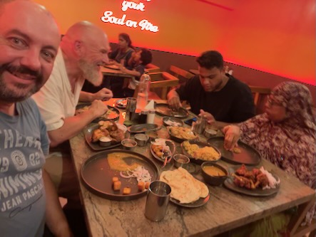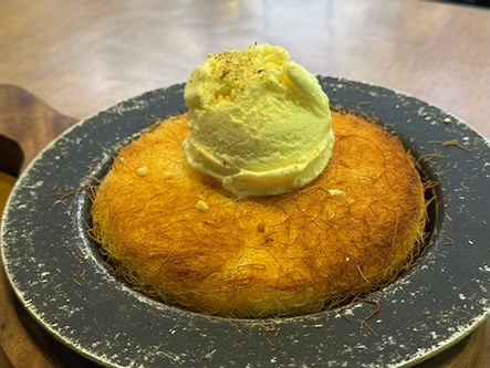 Doch damit war der Abend noch lange nicht vorbei. In einem zweiten Lokal gab es als krönenden Abschluss Kunafa – eine süße Spezialität aus dem Nahen Osten. Knusprige Teigfäden, gefüllt mit weichem Käse und getränkt in Zuckersirup… sagen wir so: gesund ist anders, aber glücklich macht es definitiv.