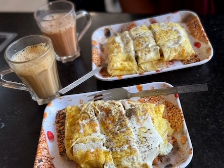 Nach einem kleinen Frühstück – bestehend aus einem Bread Omelette und einem Kaffee – starteten wir mit einem gemütlichen Spaziergang durch das Viertel rund um unser Hotel in den Tag. Zwischen hupenden Rollern, neugierigen Blicken und kleinen Straßenständen fühlten wir uns schon fast wie Einheimische.