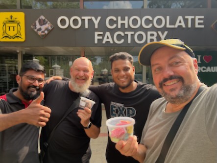 Gestärkt fuhren wir weiter zu verschiedenen Aussichtspunkten, von denen aus sich das Tal in all seiner grünen Pracht präsentierte. Irgendwann landeten wir schließlich bei der Ooty Chocolate Factory – ein Paradies für alle, die „nur mal schauen“ wollten und dann doch mit mehreren Packungen wieder herauskamen.