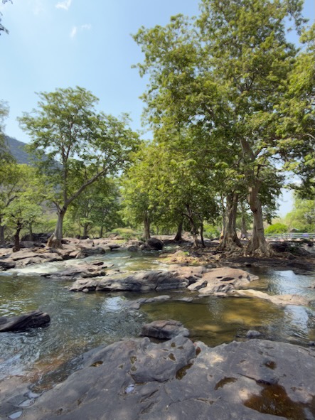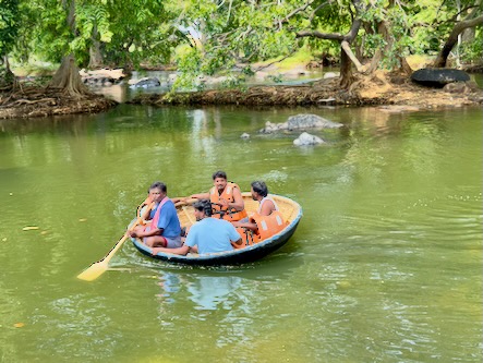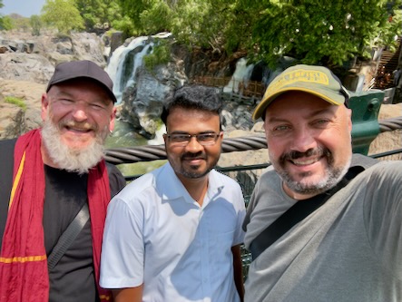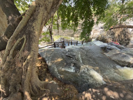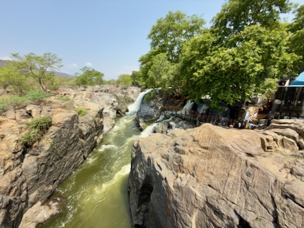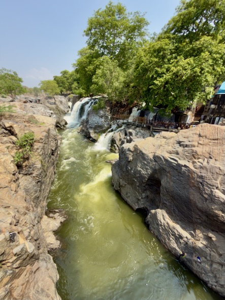Die rund 200 Kilometer hätten wir normalerweise in etwa drei bis dreieinhalb Stunden zurückgelegt. Doch wie so oft auf dieser Reise war der Weg das eigentliche Ziel. Wir haben uns Zeit gelassen, immer wieder angehalten und schließlich sogar einen kleinen Umweg zu den beeindruckenden Hogenakkal-Wasserfällen gemacht. Oft als das „Niagara Indiens“ bezeichnet, stürzt hier der Kaveri-Fluss in zahlreichen Kaskaden über zerklüftete Felsen in die Tiefe. Das Tosen des Wassers, die runden Coracle-Boote auf dem Fluss und die fast mystische Atmosphäre machten diesen Ort zu einem ganz besonderen Zwischenstopp.